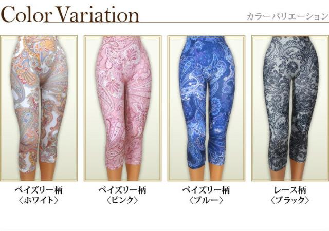 レギンス スパッツ STAMPA プリントレギンス 7分丈 スポーツ ヨガ 美脚 柄 レース ペイズリー タ