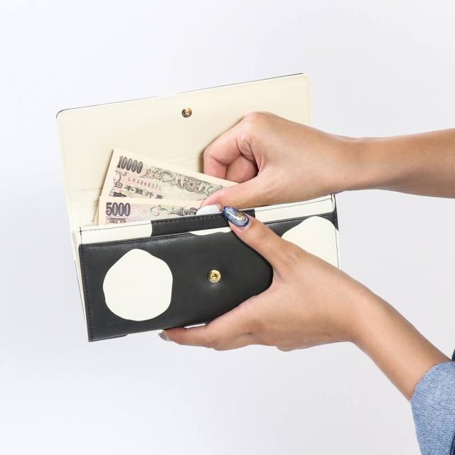 ポップでキュートなディテールと、不規則なドット柄が魅力の「ズームドット」シリーズのがま口長財布。しっかりとした収納力と愛らしさを両立し、大人可愛い存在感を放つアイテムです。