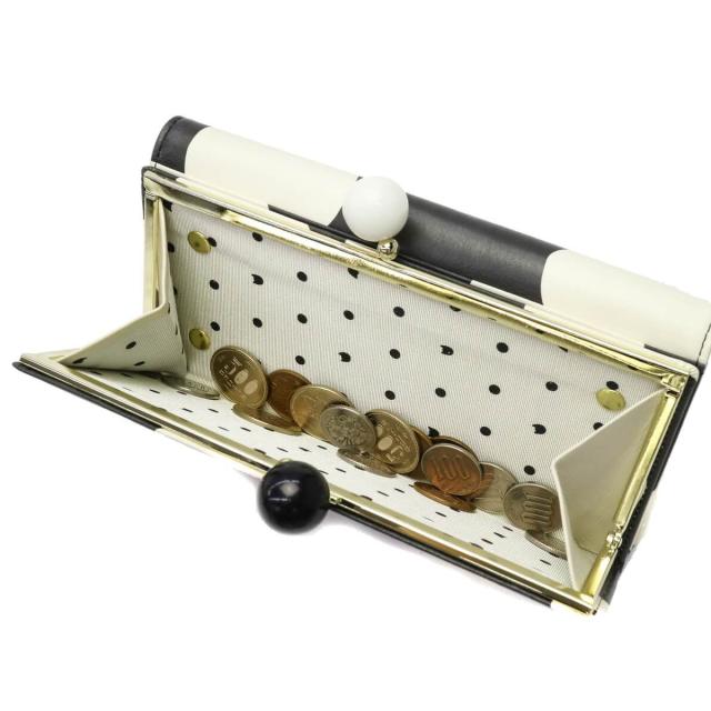 小銭入れは、大きく開き見渡しやすいがま口タイプ。持っているだけで気分が上がるデザインと、飴玉みたいに丸くてかわいい金具もポイントです。