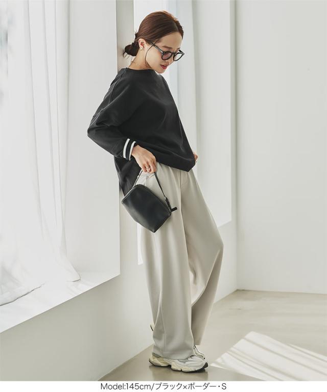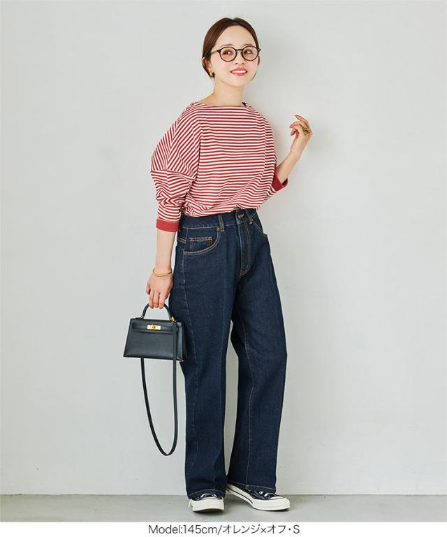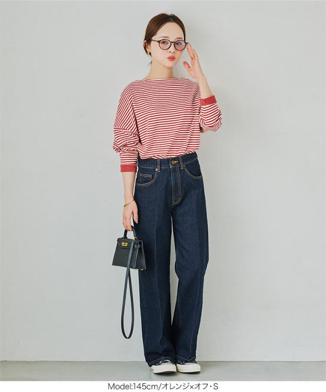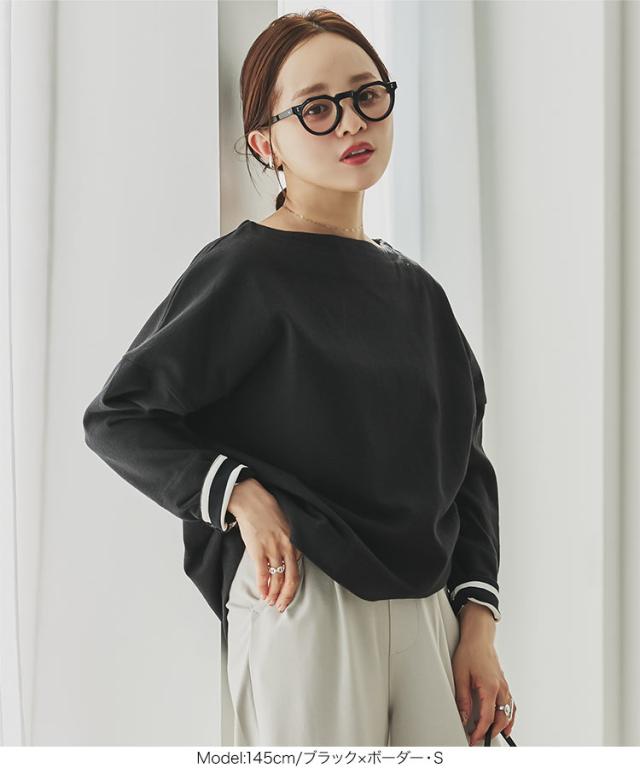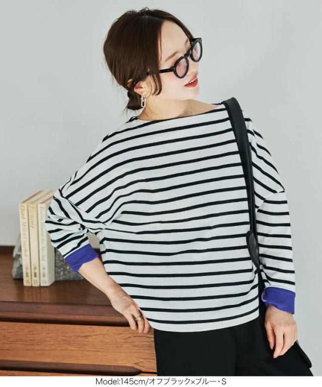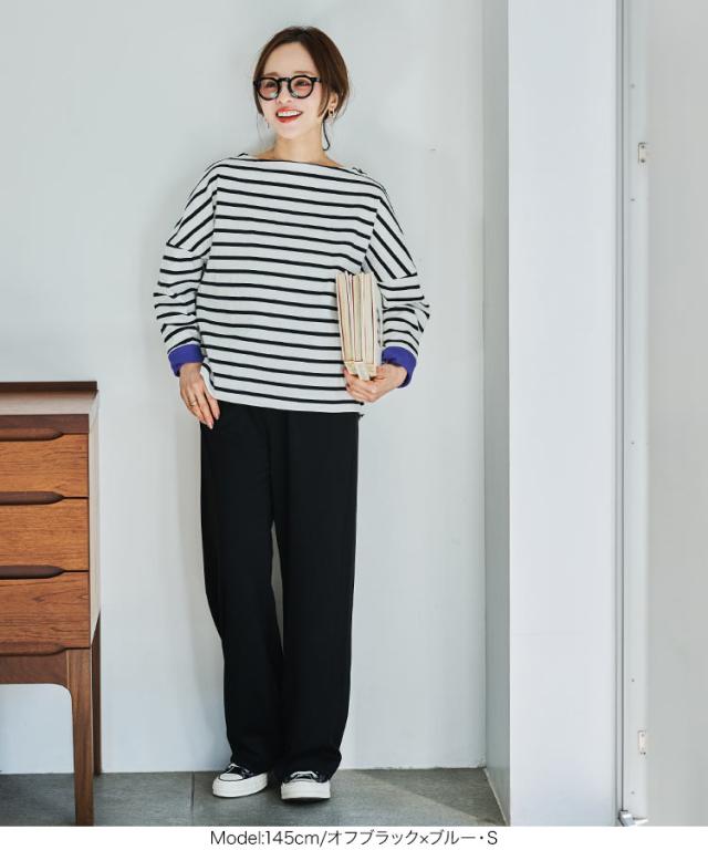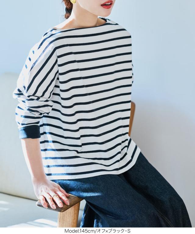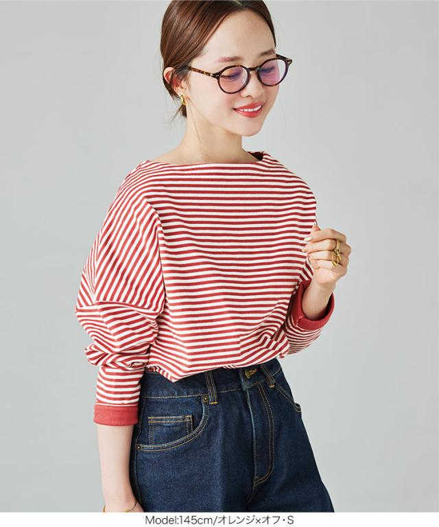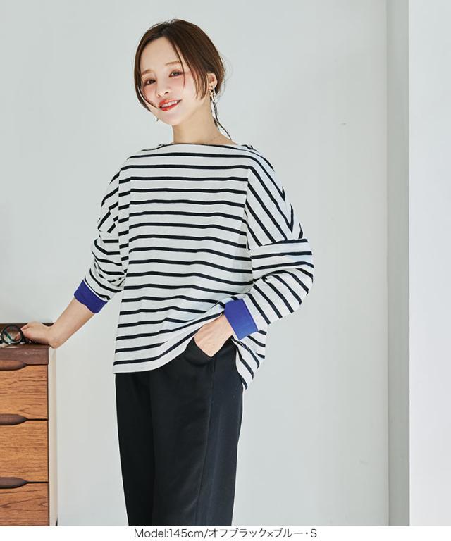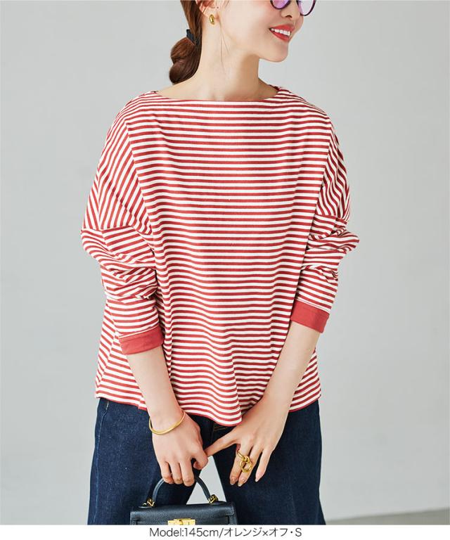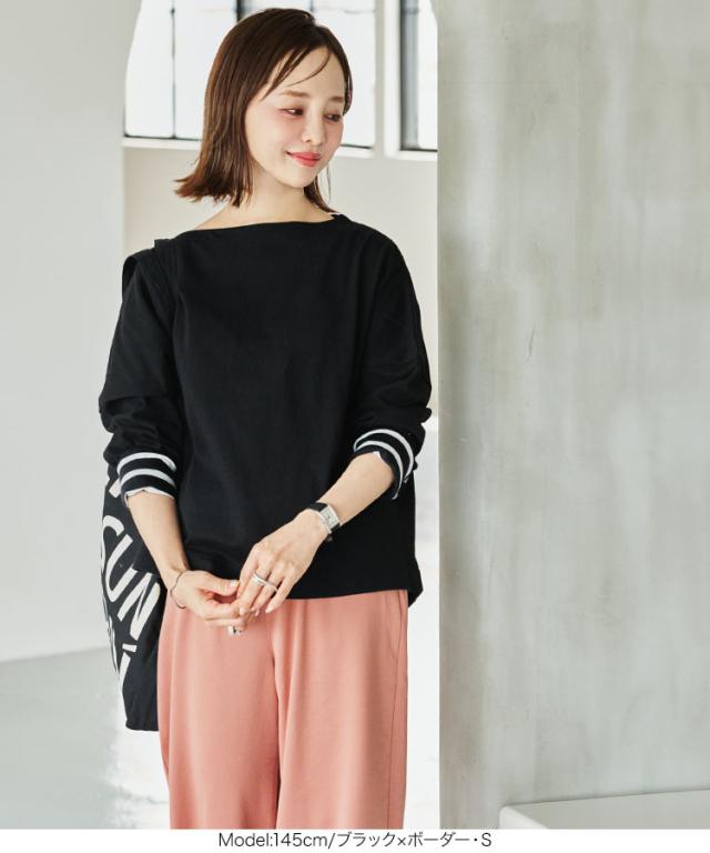送料無料 [ 田中亜希子さんコラボ ][ S M L ] ロンT カットソー C3406 入荷済 ボーダー レディース 長袖 Tシャツ トップス ヘビーウェイト ボートネック プルオーバー 綿100% コットン100% 大きいサイズ メ便対応