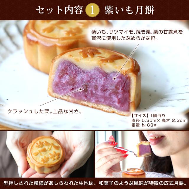 リムテー スイーツ 紫芋 秋 限定 月餅 紫いも月餅 単品1個 お取り寄せ 個包装 砕き栗入り 菓子 横浜中華街