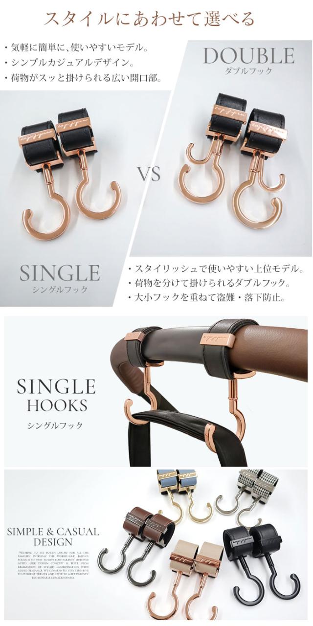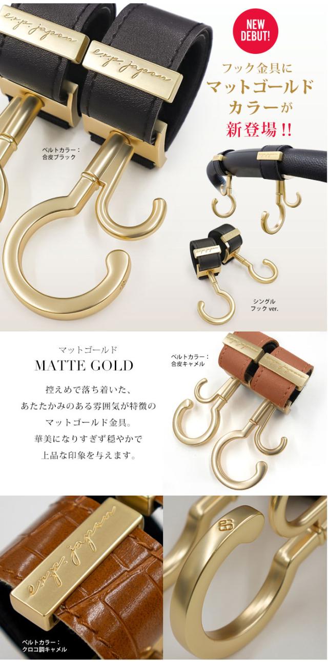 ベビーカーフック 2個入り\マットゴールド金具追加/ ベビーカー フック 360度回転 ダブルフック e.x.p.japon バギーフック 正規品 ベビーカー用フック ギフト プレゼント 出産祝い おしゃれ ベビーカー用品 ペットカート ドッグカート 車椅子 メール便送料無料 BUGGY HOOKS
