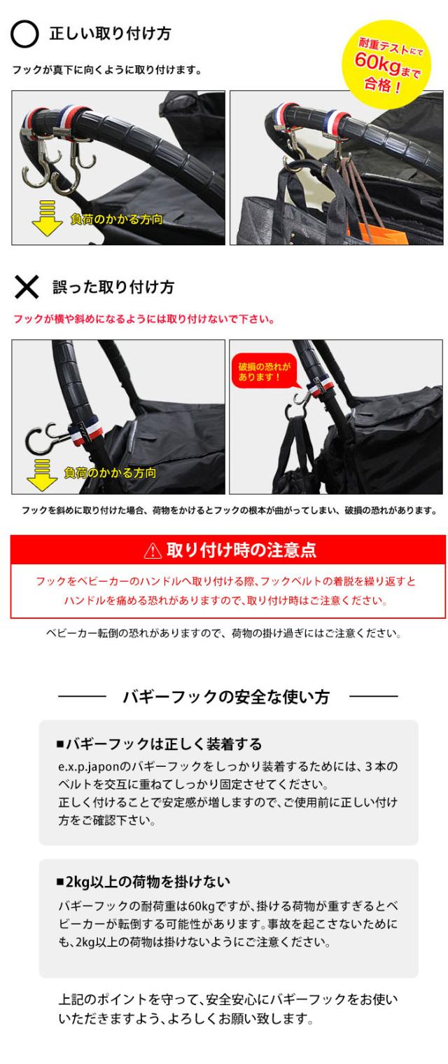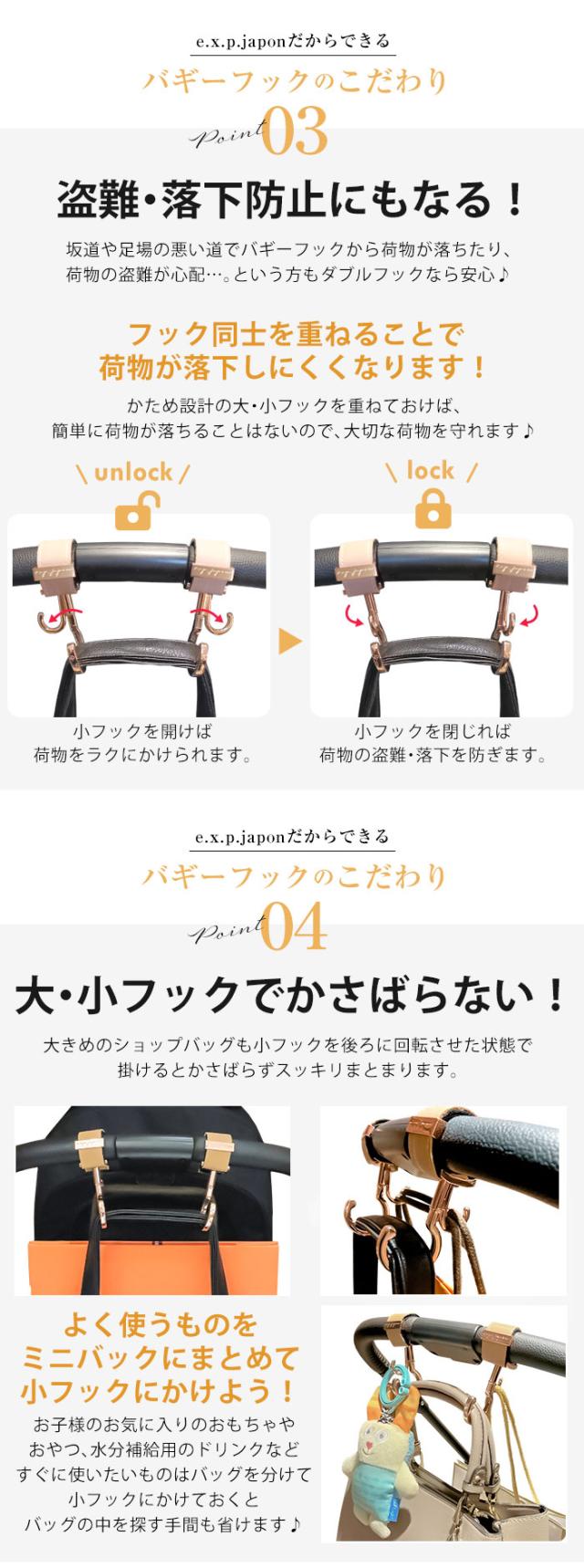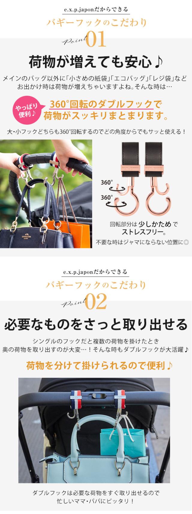 百貨店でも大人気のe.x.p.japonブランドのバギーフックは国際特許取得済。意匠登録済。※模造品・類似品にご注意ください