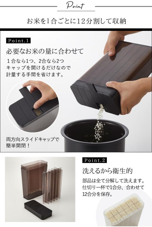 日本テレビ 有吉ゼミで紹介された、アイデア満載の米びつ。お米が1合ごとに12分割されているから、必要な分のお米を直接おかまに注ぐだけ!