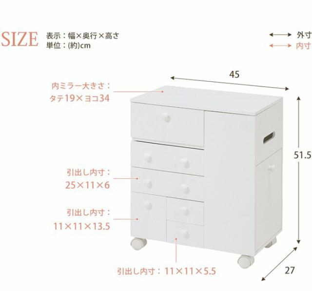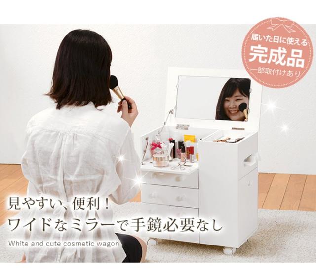 コスメワゴン キャスター付き ドレッサー メイクボックス 鏡台 化粧台 ミラー付き ホワイト 完成品