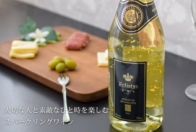 【お花にプラスワン】ラテン語で「幸福」を意味するフェリスタス 金箔入りスパークリングワイン 750ml ※お酒のみの購入はできません