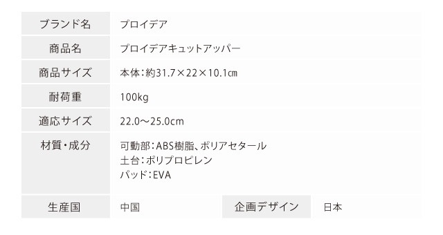 【素材】可動部:ABS樹脂、ポリアセタール 土台:PP パッド:EVA