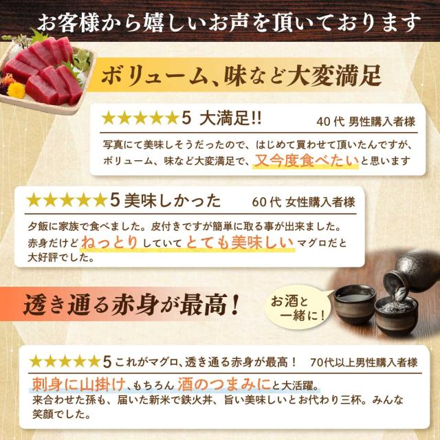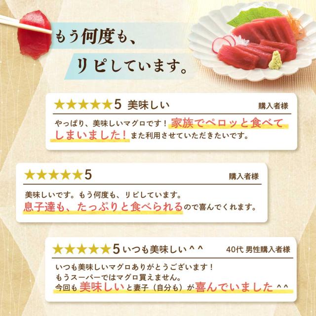 - このお店の商品は、いつも美味しいです。 赤身も美味しかったです。 また、食べたいと思います。