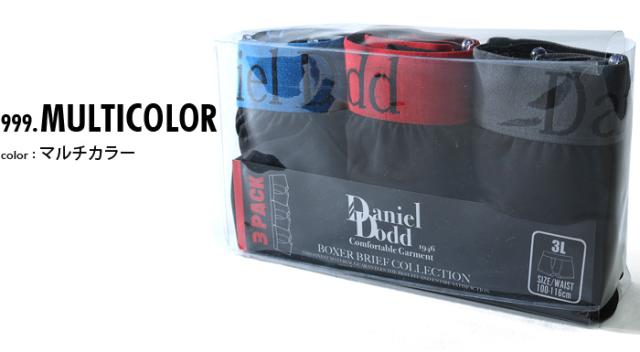 【大きいサイズ】【メンズ】DANIEL DODD カラーステッチボクサーブリーフ 3枚セット【肌着/下着】azup-30000