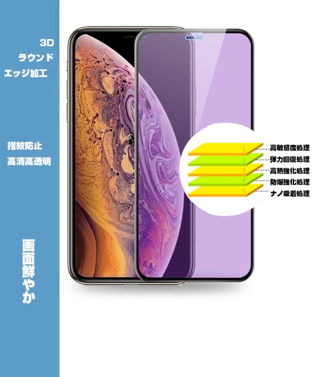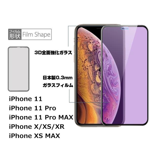 【2枚セット】iPhone12/12mini/12Pro/12ProMax/11/11Pro/11ProMax/XS/XR/X ブルーライトカット 3D 全面保護 強化ガラス保護フィルム