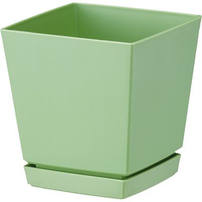 ●明るいパステル調のカラーでインテリアとしての楽しみ方を広げます。うれしいプレート付きで、一体感あるすっきりしたデザインです。4号鉢には3.5号ポット苗の投げ込みができ、花苗を簡単に飾って楽しめます。