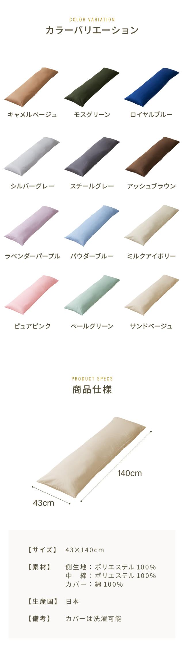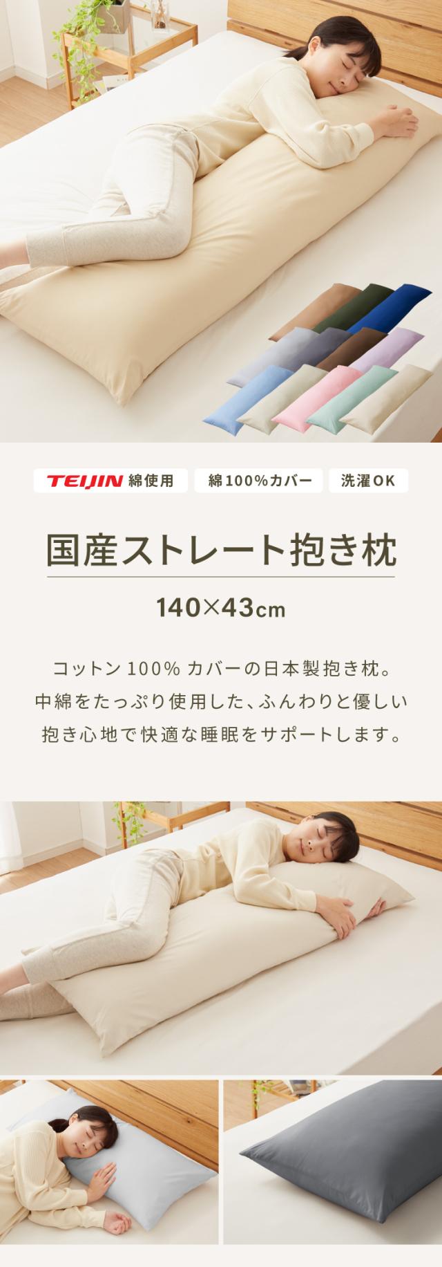 抱き枕 ストレート 日本製 綿100% 140cm テイジン製中綿使用 専用カバー付き 安眠 プレゼント ギフト 横向き かわいい 抱きまくら だきまくら まくら 枕 クッション 【送料無料】