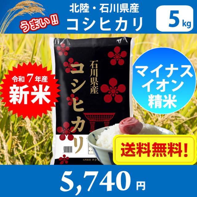 【令和7年産 新米】【精米】北陸・石川県産コシヒカリ5kg 送料無料!!(北海道は別途700円かかります。沖縄配送不可)