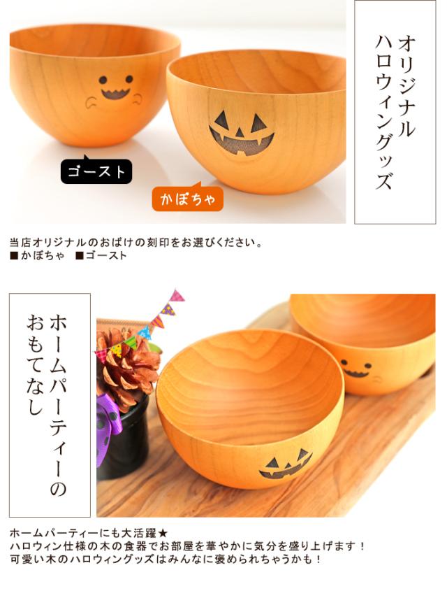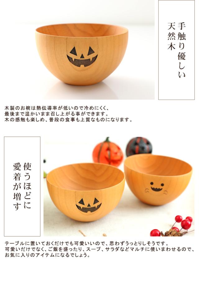 天然木製 ハロウィン おばけボール 汁椀 お椀 お碗 ボウル ゴースト かぼちゃ カボチャ ホームパーティ ハロウィーン オリジナル おわん 木製 食器 味噌汁 おしゃれ k_name