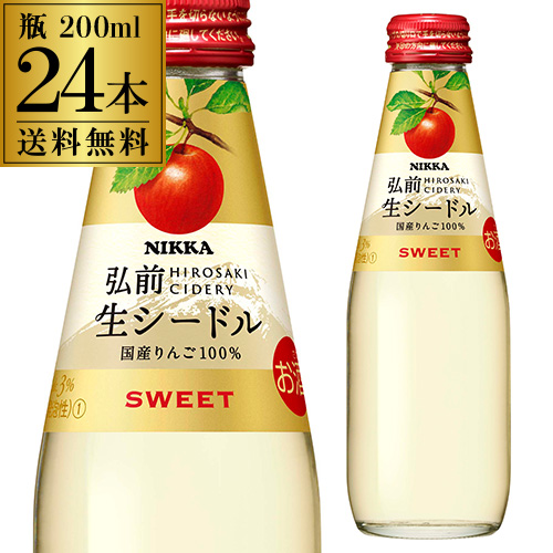 送料無料 ニッカ弘前 生シードル スイート 200ml瓶 24本入ケース スパークリングワイン やや甘口 日本 りんご酒 国産ワイン ITO