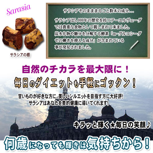 【成分について】本品は、インド・スリランカ伝統医学アーユルヴェーダでも使用されてきた天然サラシアを使用。糖の吸収抑制作用が報告されており、糖質対策や生活習慣の改善を意識される方に特に支持されています。