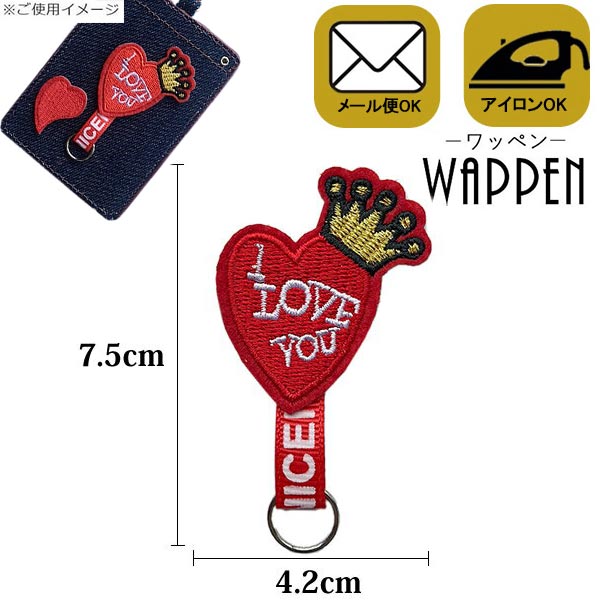 ハート ワッペン 名札付け アイロン接着 縦7.5cm×横4.2cm LOVE YOU ハート×王冠 アップリケ アイロンワッペン ネーム 母の日 プレゼント ギフト