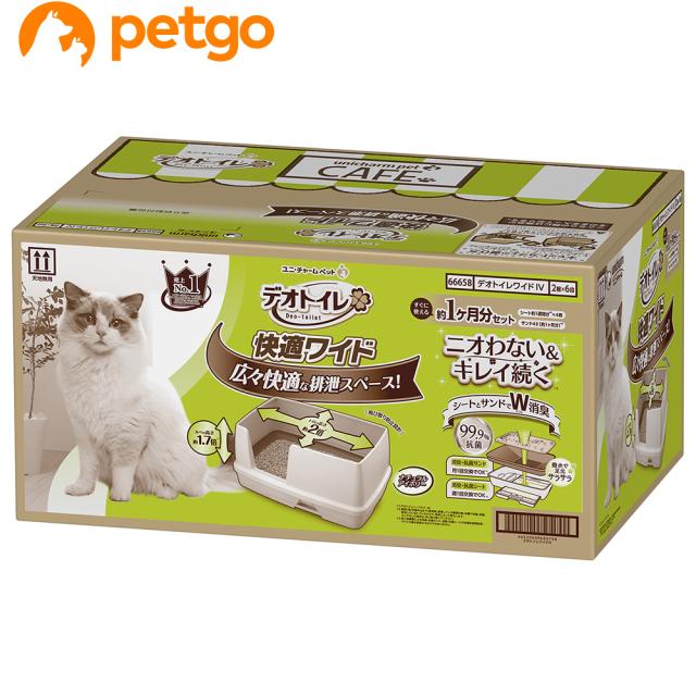 ●ゆとりの排泄スペース。閉めきった部屋でも1週間ニオわない消臭・吸収力にゆとりの排泄スペースをプラス。●トイレが広いから、カラダの大きなねこちゃんもゆったり楽な姿勢で排泄できる。複数のねこちゃんで使ってもサンドが汚れにくく排泄しやすい。●サンドの飛び散り防止構造。ねこちゃんをすっぽりと包み込む壁でサンドの飛び出しを抑制します。●シート1枚で1週間しっかり消臭・抗菌。デオトイレのシートは、抗菌剤入りなので、アンモニア臭(悪臭)の発生を防ぎます。ねこ専用の消臭マイクロカプセル配合で強力消臭。【セット内容】・トイレ本体(快適ワイド)・・ウンチ専用スコップ・飛び散らない消臭・抗菌サンド2L×2(約1ヵ月分)・消臭・抗菌シート4枚(約1ヵ月分)