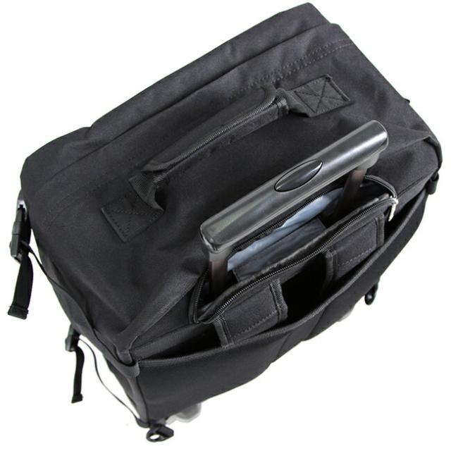 | フロントにはファスナーポケットを2つ搭載。最大A4ファイルサイズが収納することができます。 |