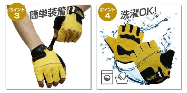 - サイクリンググローブとして購入しました。大半のサイクリンググローブは、掌側が真っ黒で、車等に合図する場合は目立たないため、円滑なコミュニケーションを取れないのですが、この商品なら安心ですし、なんと言ってもヘビーデューティなので、転倒した際に拳を守ってくれると思います。