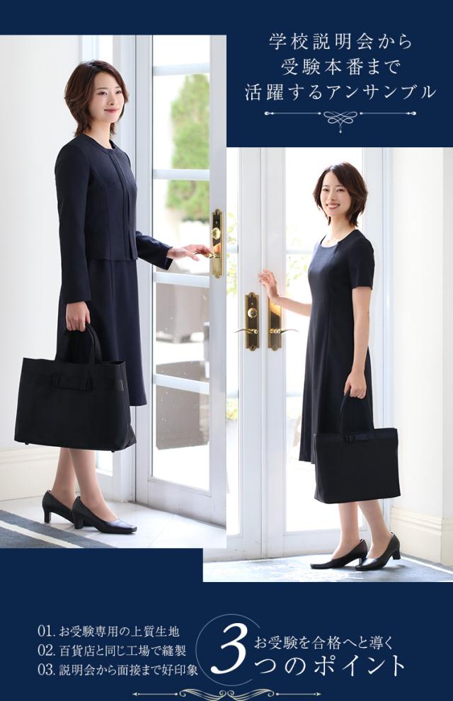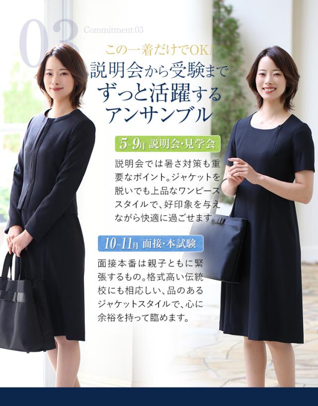 [お受験スーツ ママ 母 合格 面接 紺 濃紺 レディース ワンピース フォーマル 前開き 入園式 卒園式 入学式 卒業式 学校見学会 セレモニー 七五三 お宮参り お受験 スーツ 大きいサイズ アンサンブル 女性用 KS-0301 送料無料]