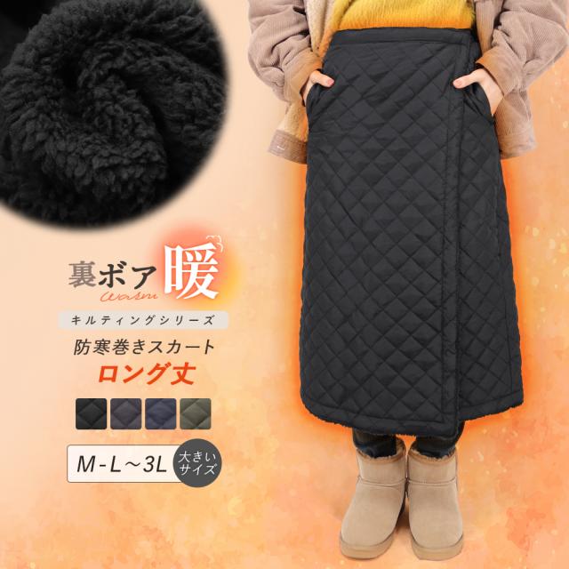 裏ボア キルティング 巻きスカート ロング丈 裏起毛 ロング 防寒 冬 冬用 撥水 静電気防止 マキシ レディース キルティングスカート *00