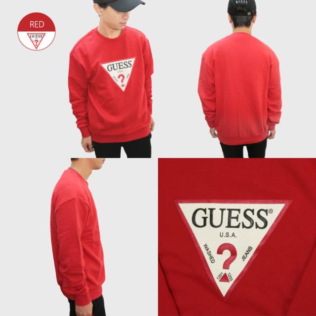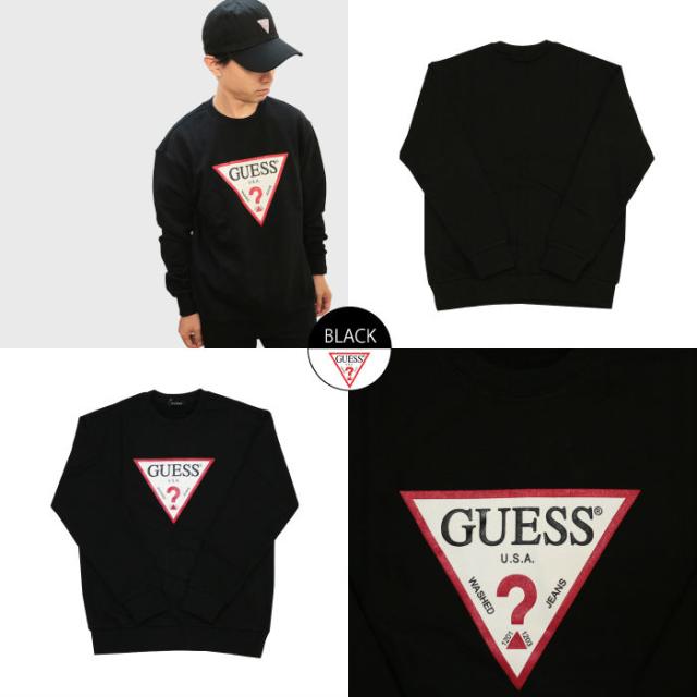 GUESS ゲス スウェット トレーナー クルーネック 長袖 ロゴ 定番 エンボス アメカジ メンズ men's インポート ブランド ウィメンズ