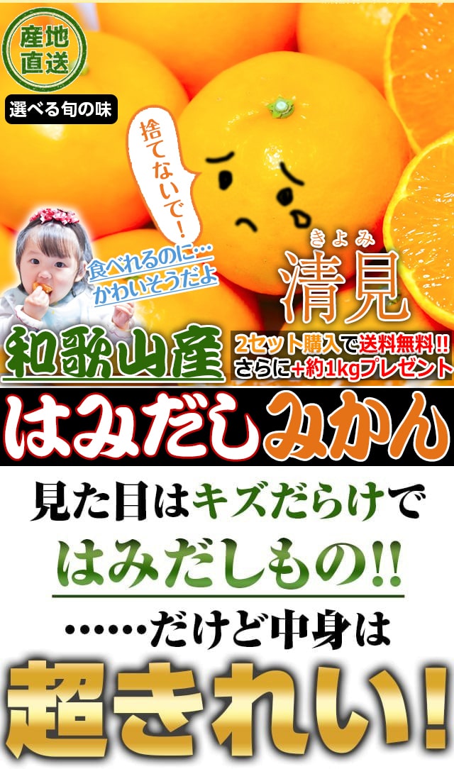 訳あり 清見 オレンジ きよみ キヨミ Kiyomi 和歌山県から産地直送 箱買い 2kg 2セット購入で送料無料+約1kg分プレゼント!!ポイント消化 はみだしみかん ご家庭用 お買い得 柑橘 果物 果実 デザート フルーツ 国産