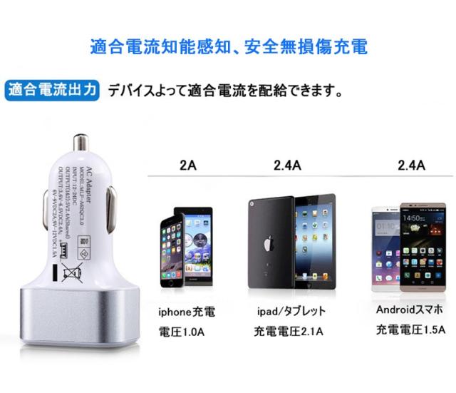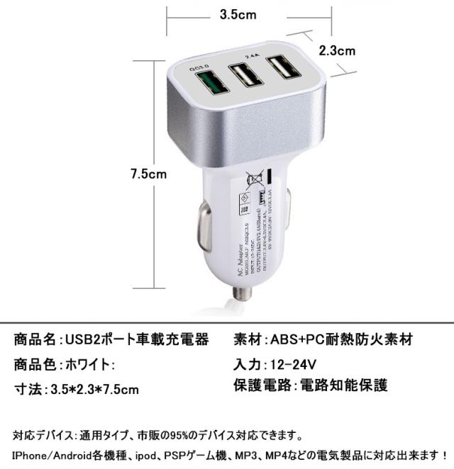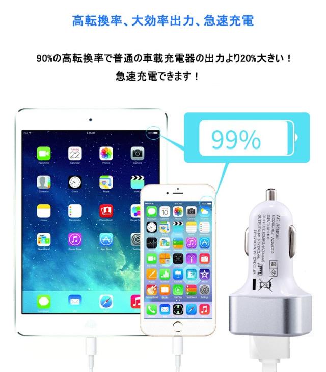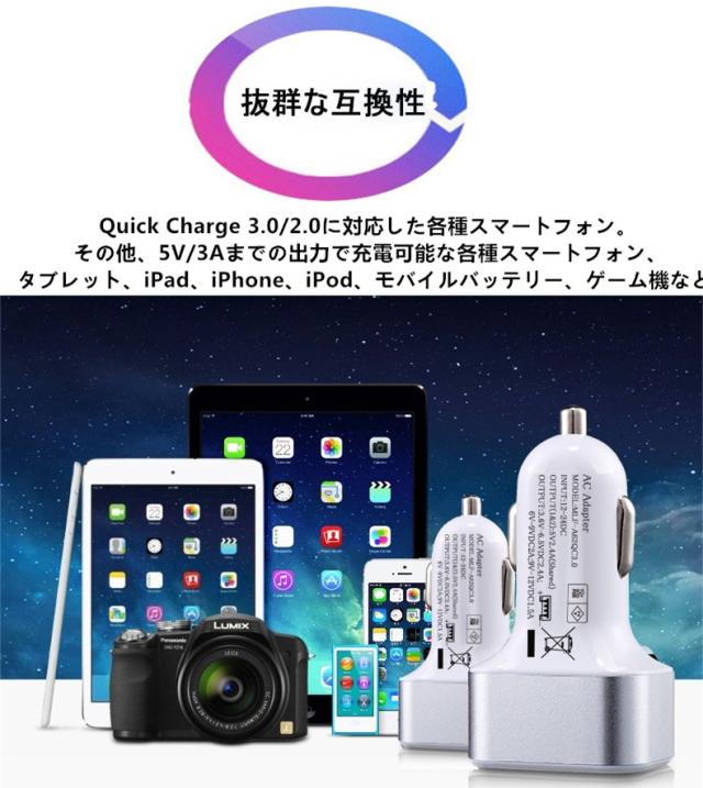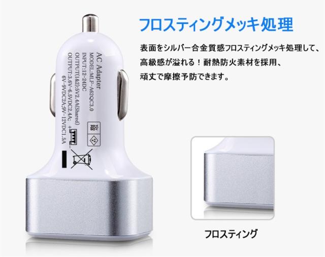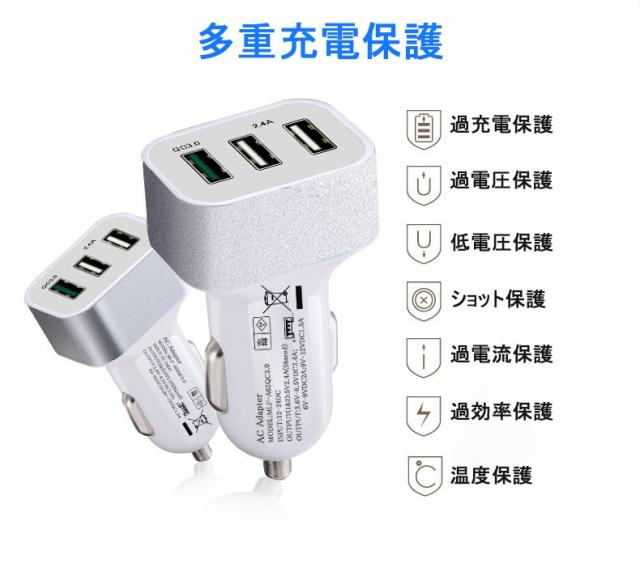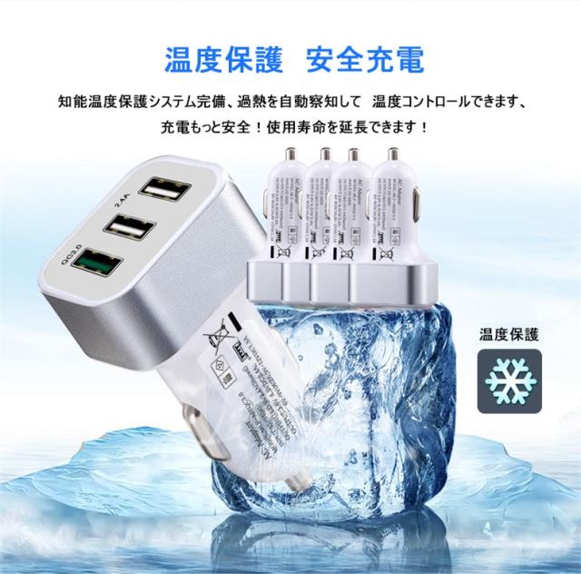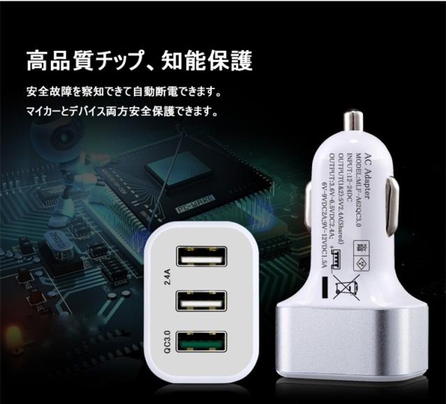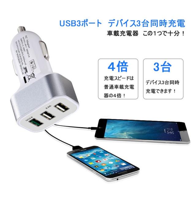 ACアダプター カーチャージャー Quick Charge 3.0 充電器 2.4A超高出力 USB3ポート 高速充電iPhone17/16/15/14充電可 車載用 電源アダプター コンセント PSE認証 【PL保険加入済み製品・安心】