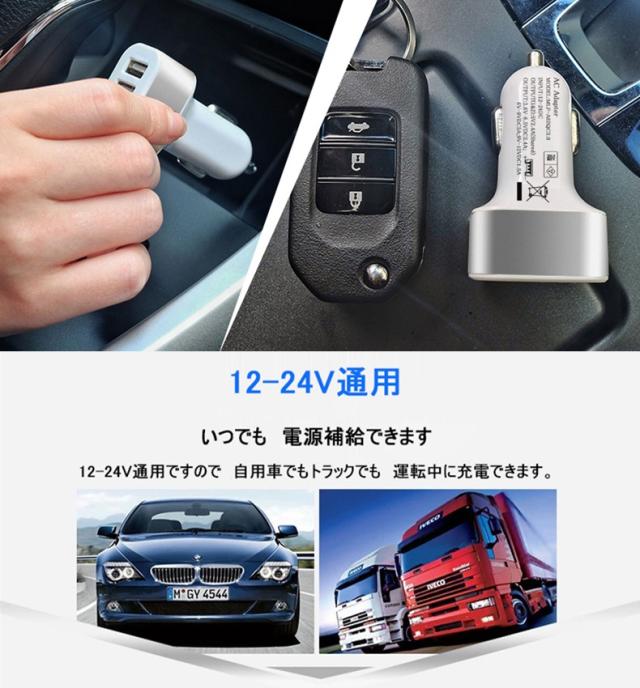 いつでも電源補給できます!12-24V通用ですので、自用車でもトラックでも、運転中に充電できます。