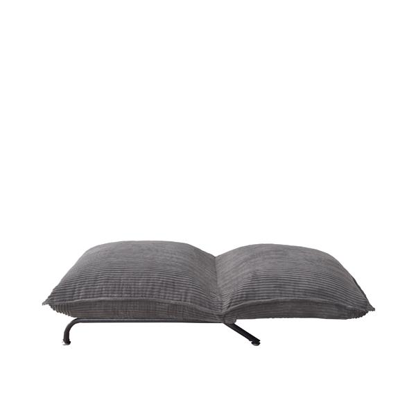 コーデュロイ生地はやわらかく優しい手触り、スチール脚でスッキリとした印象