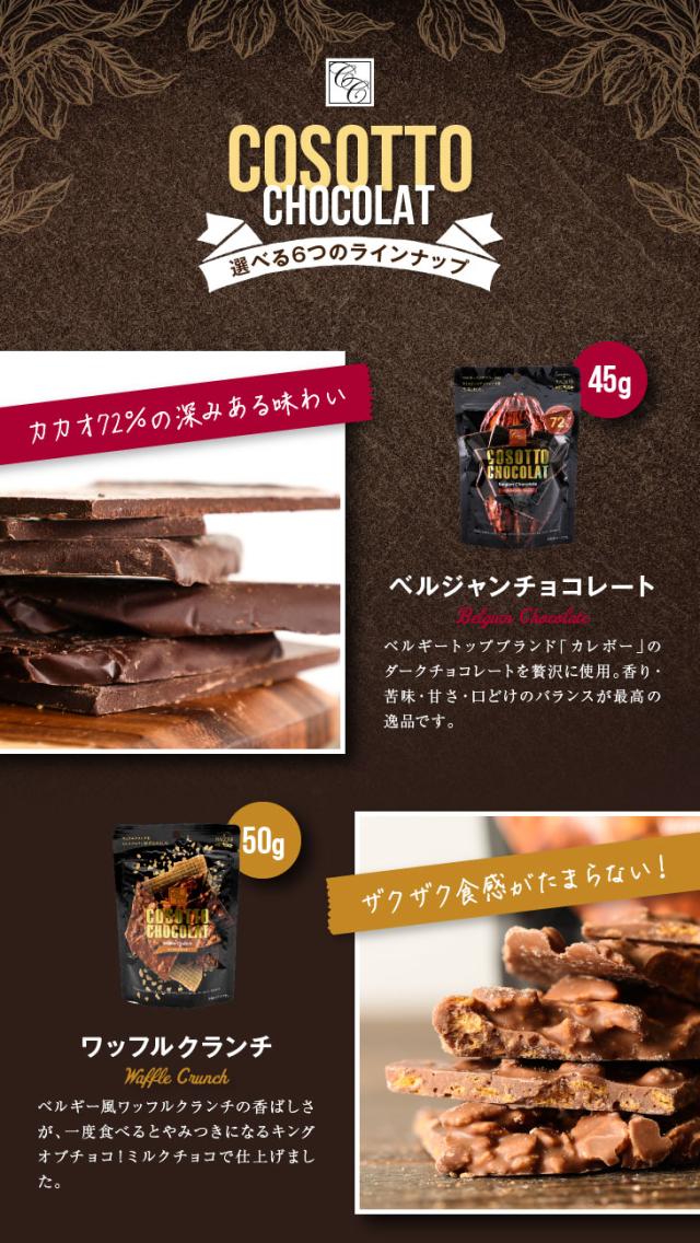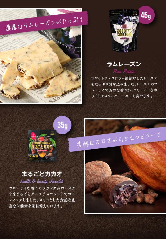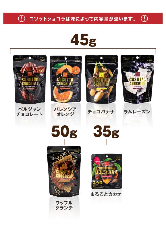 コソットショコラ45g 選べるフレーバー カカオ72%/ワッフル/オレンジ/バナナ/ラムレーズン/まるごとカカオ 35g お試し 小袋タイプ 割れチョコ