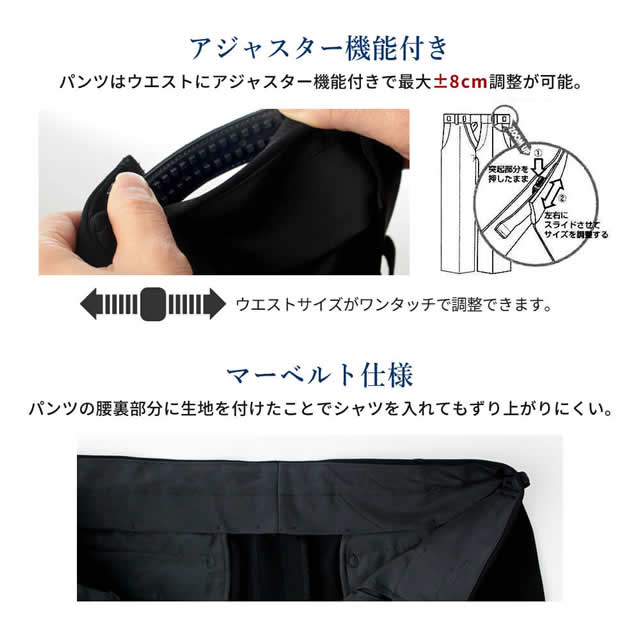 うれしいパンツウォッシャブルでシワになりにくいイージーケア素材使用。