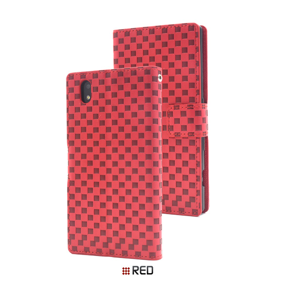存在感抜群!市松模様レザーデザインの手帳型ケース。
