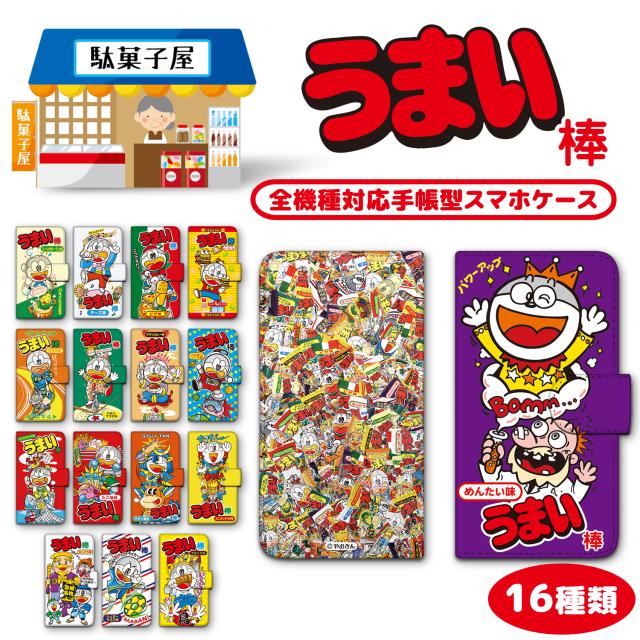 うまい棒 プリント手帳 / キャラクター スマホ カバー スマホケース 手帳型 全機種対応 iPhone17 Air iPhone16 Google Pixel 10 10 Pro 8a Xperia 10 IV Galaxy A53 5G AQUOS sense9 wish5 スタンド カード収納 ケース galaxy s24