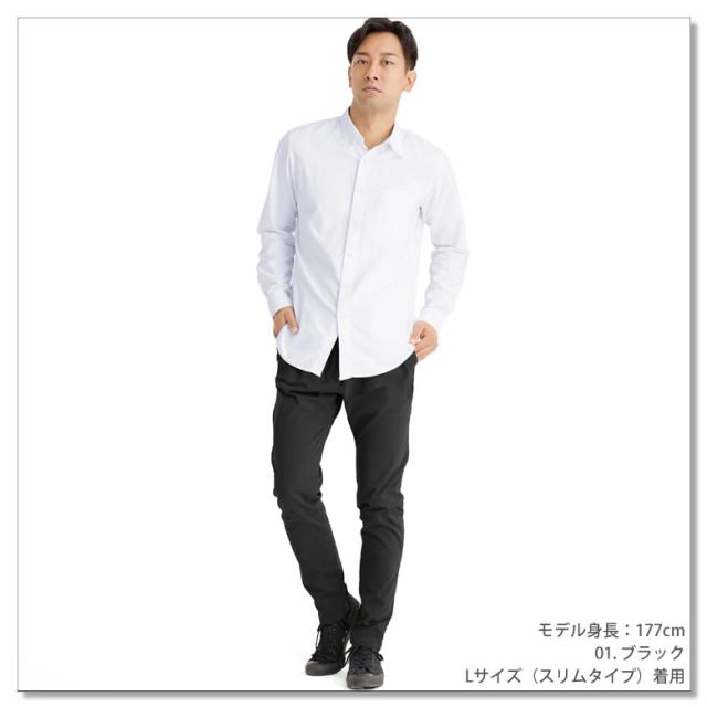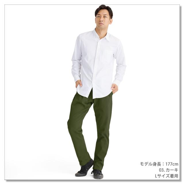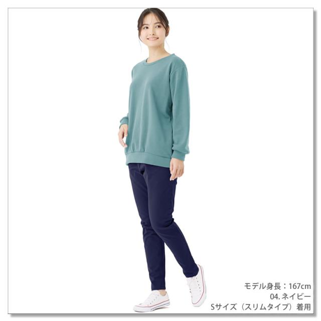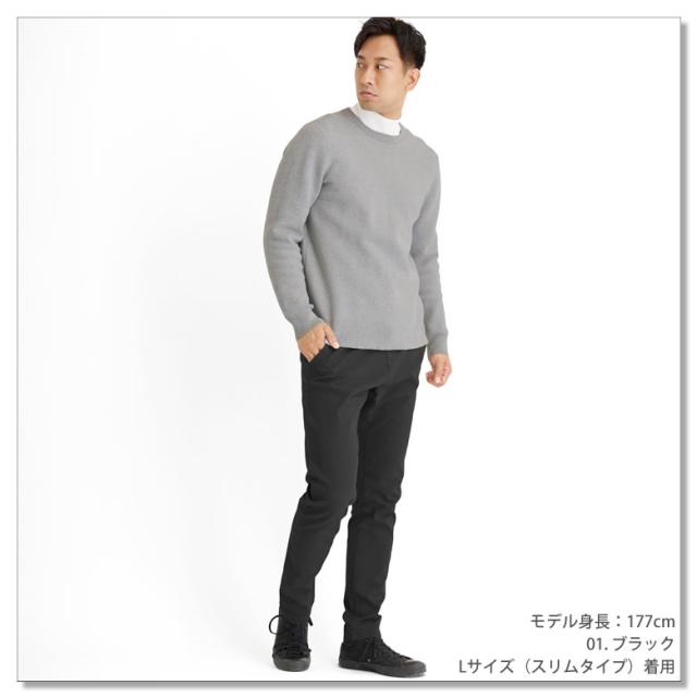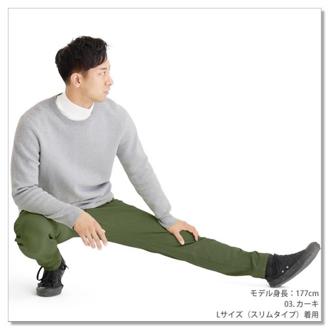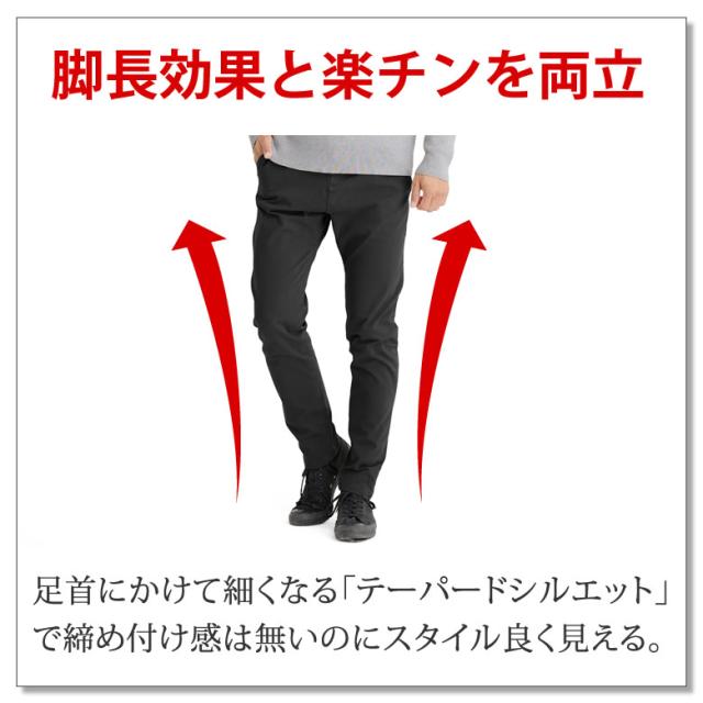 足首にかけて細くなる「テーパードシルエット」で締め付け感は無いのにスタイル良く見える。
