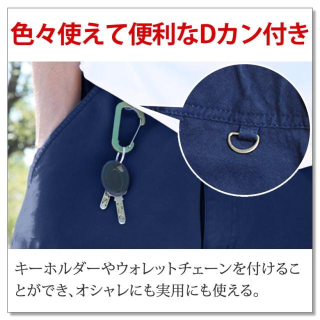 腰の右前にはDカンが付属しており、キーリングなどを付ければすぐに使えて便利。