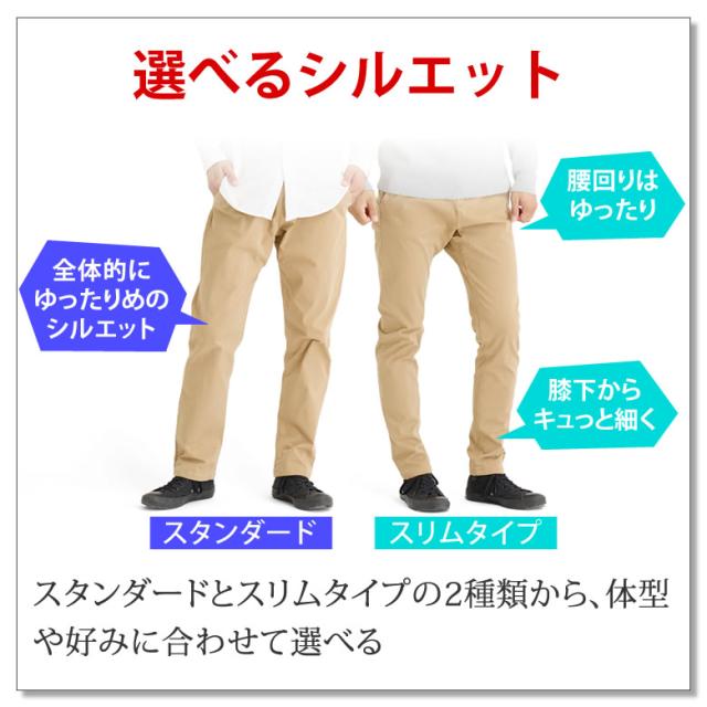 スタンダードとスリムタイプの2種類から、体型や好みに合わせて選べる