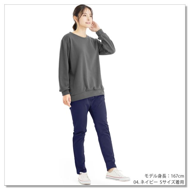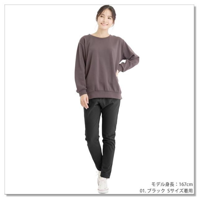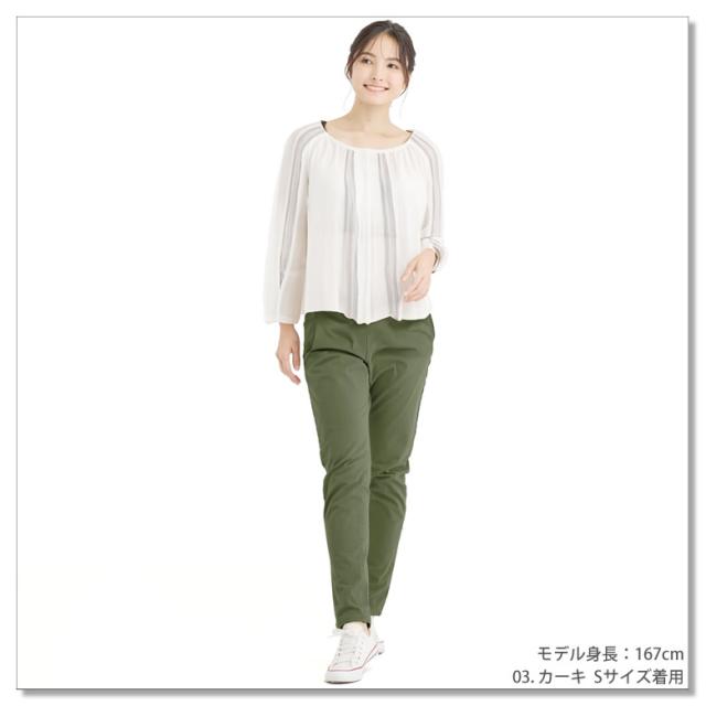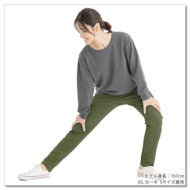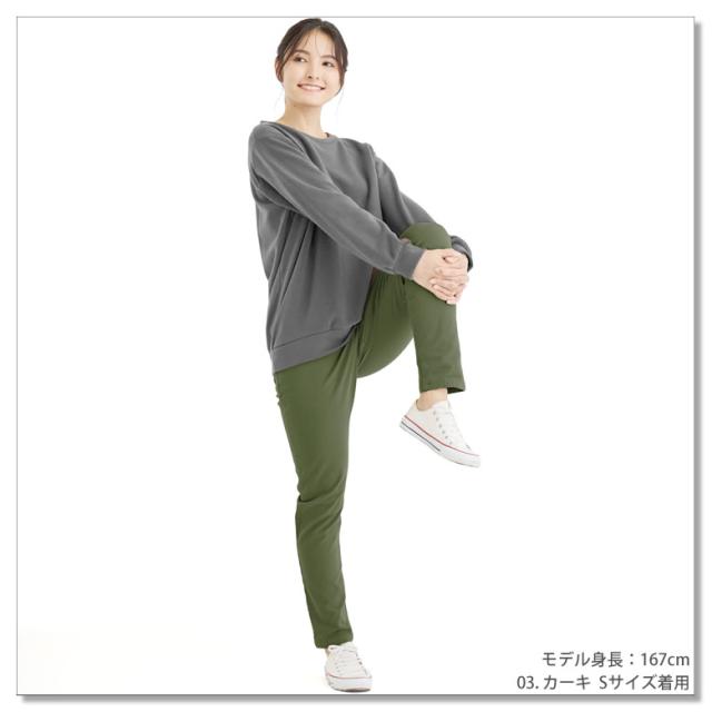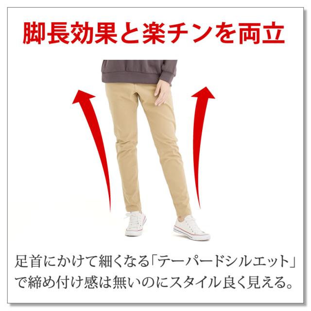 足首にかけて細くなる「テーパードシルエット」で締め付け感は無いのにスタイル良く見える。