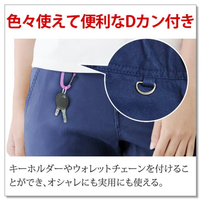 腰の右前にはDカンが付属しており、キーリングなどを付ければすぐに使えて便利。