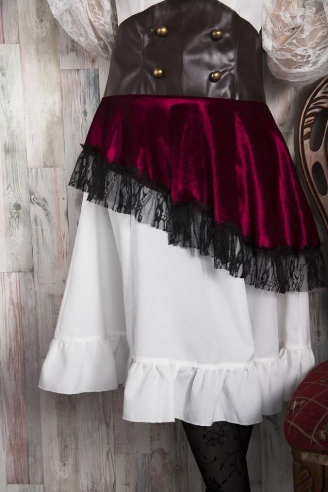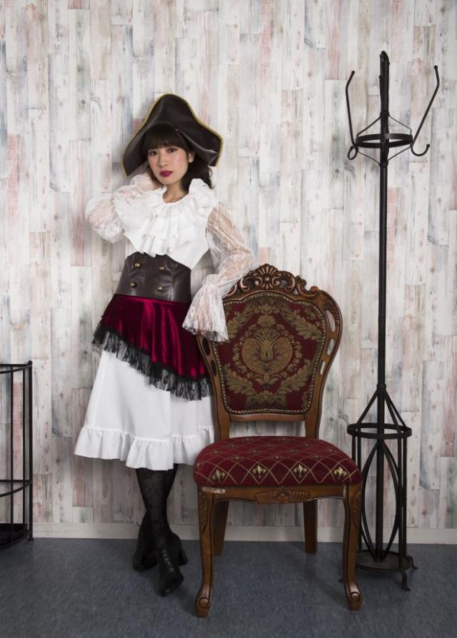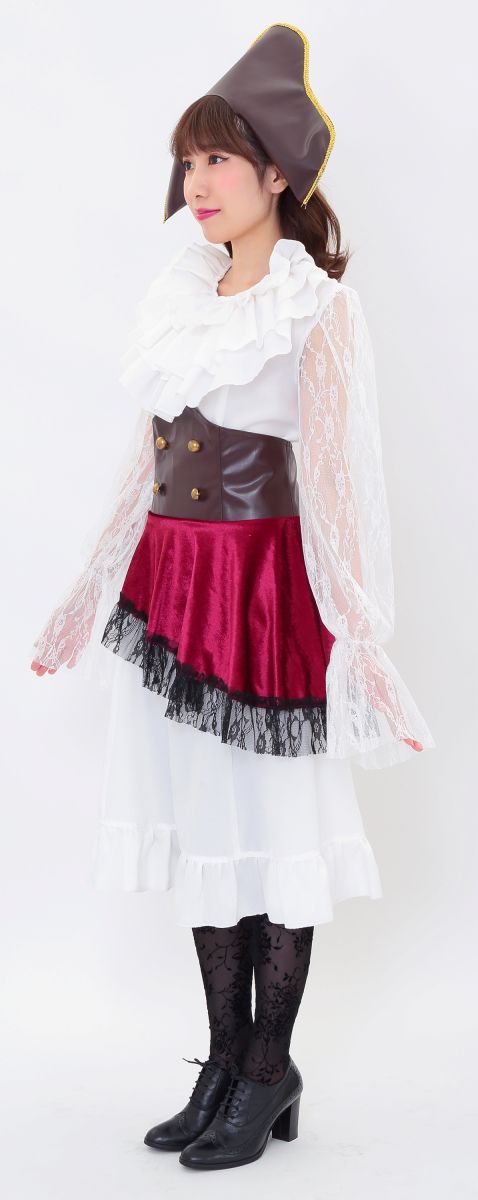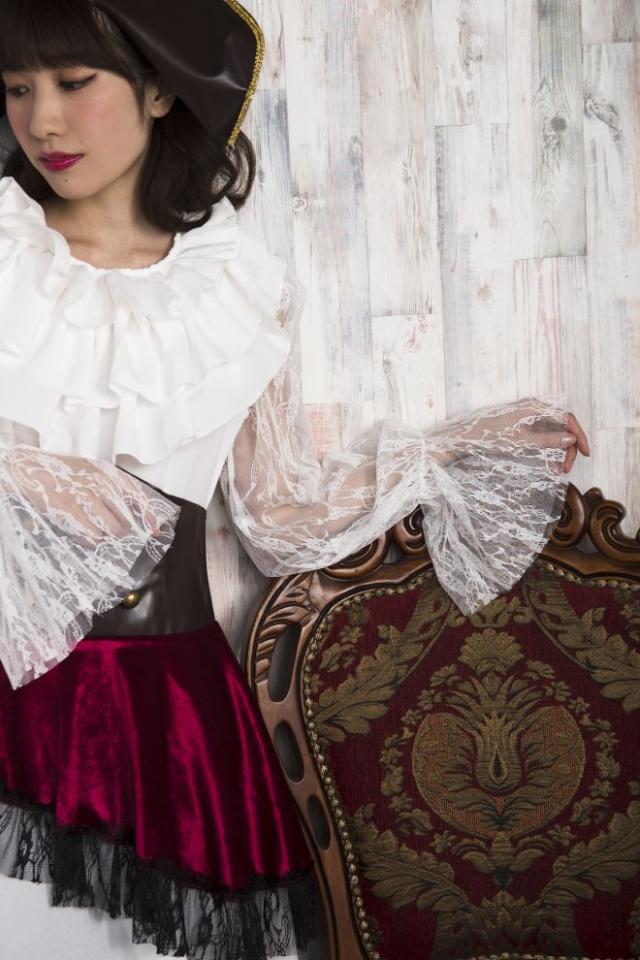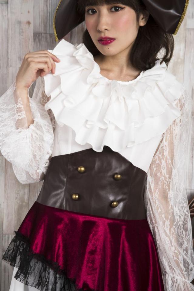 インパクトのある海賊ハットがかっこいい!首回りのフリルはボリュームがあってゴージャス!コルセットは開き部分がストレッチ素材になっているので着やすいです。袖のレースが繊細でエレガント!大人の女性にオススメです。