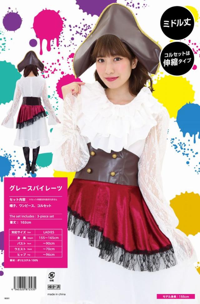 ハロウィン コスプレ グレースパイレーツ 海賊 女 海賊 膝丈 膝たけ スカートコスチューム レディース 女性 送料
