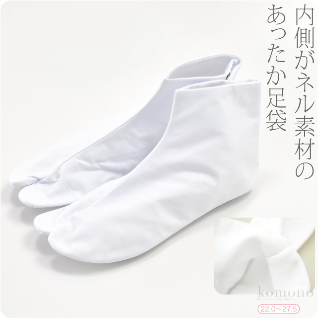 | 備考 | : | ネル素材で冬もあったか足袋です。 内側が起毛したネル素材で、寒い季節で足先が冷える時でも温かくいられます。 足先も見えない所で防寒対策しましょう。 サイズ展開も豊富です。 女性から男性まで冬もあったかく着物をきましょ。 くるぶし丈のインナー足袋とのセットはこちらから購入できます。 ロング丈のインナー足袋とのセットはこちらから購入できます。 足袋用タイツとのセットはこちらから購入できます。 | ||