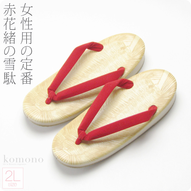 | 備考 | : | 女性用の定番、赤花緒の雪駄です。 踊りの時や普段履きでも使えます。 台座はビニールですが、足裏にまとわりつく感じもないので、素足でも履きやすいです。 足先に反りがあるので、足裏に負担がかかりにくいです。 サンド底で軽いです。(少し滑りやすいのでご注意ください。) 踊りの方など、グループでまとめ買いはいかがですか? ※花緒の裏に色が付いている物は色移りする場合がありますのでご注意ください。 ※ソール(底)スポンジ部分に小さな穴や接着剤の付着がある場合がありますが、製作工程上避けられないものです。予めご了承ください。 ※裏のかかとのノンスリップ部分の長さが左右で異なる場合がありますが、難ではございません。予めご承知置きの上、ご購入ください。 M,Lサイズはこちらから購入できます。 3Lサイズはこちらから購入できます。 | ||||||||