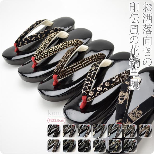印伝風の鼻緒に情緒があり可愛いお洒落向きの草履です。