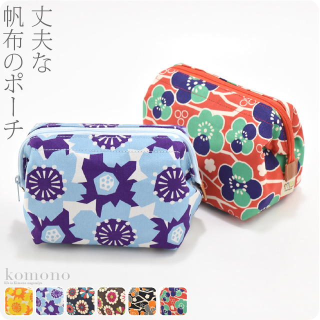 | 備考 | : | 丈夫な帆布のポーチです。 口部分にワイヤーが入っていて、ガバッと大きく開き使いやすいです。 お出かけのセカンドバッグや、近所のお買い物などにお使いください。 温かみのある和柄の帆布ポーチです。 モダンな花柄でお洒落、プレゼントにもいいですね。(当店ではプレゼント包装は承っておりません。) 帆布とは、平織りでおられた厚手の布です。 帆船の帆として使うために、厚手の丈夫な布として作られたのが始まりです。 ※柄の出方はお任せとなります。 | ||||||