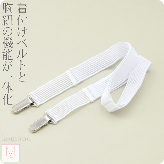 | 備考 | : | 着付ベルトと胸紐の機能が一体化した便利グッズです。 クリップで着物の衿合わせをきっちり安定させつつ、ゴム紐で胸元の着崩れを防ぎます。 上前と下前をクリップで留めたら、ゴム紐を背中でクロスさせて前で留め具を留めます。 モスリンなどの布紐と比べてゴムなので伸縮性があり、動きに対応して着崩れを防ぎます。 着物を着慣れない方にもお勧めです。 クリップ部分はステンレスです。 長さの調節も可能です。 プラスチック製の留め具を使用していますので、結び目が出来ません。 美しい胸元をキープするために是非どうぞ。 メッシュ素材ですので、浴衣や夏着物にもお勧めです。 Lサイズはこちらから購入できます。 | ||||||