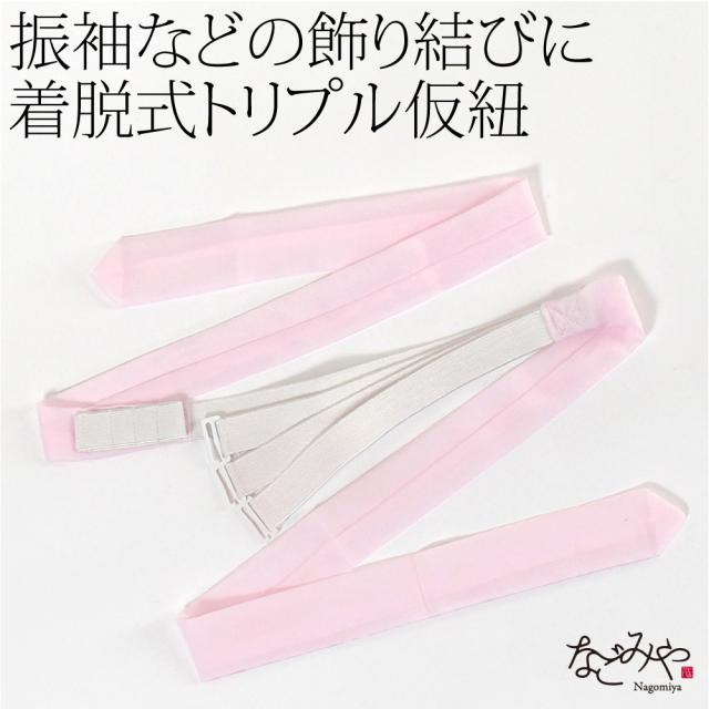 振袖や訪問着の変わり結びに。金具で止める便利な着脱タイプの三重仮紐です。