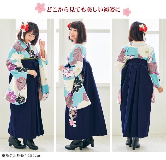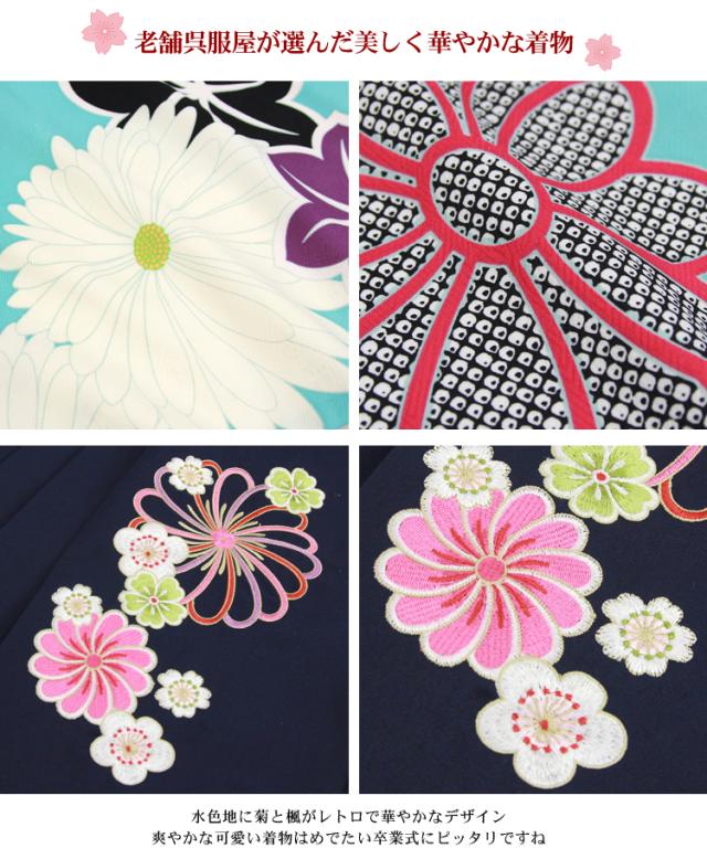 卒業式 袴 レンタル 女 袴セット 卒業式袴セット 2尺袖着物&袴 フルセットレンタル 「水色地にレトロ菊と楓」レトロ モダン