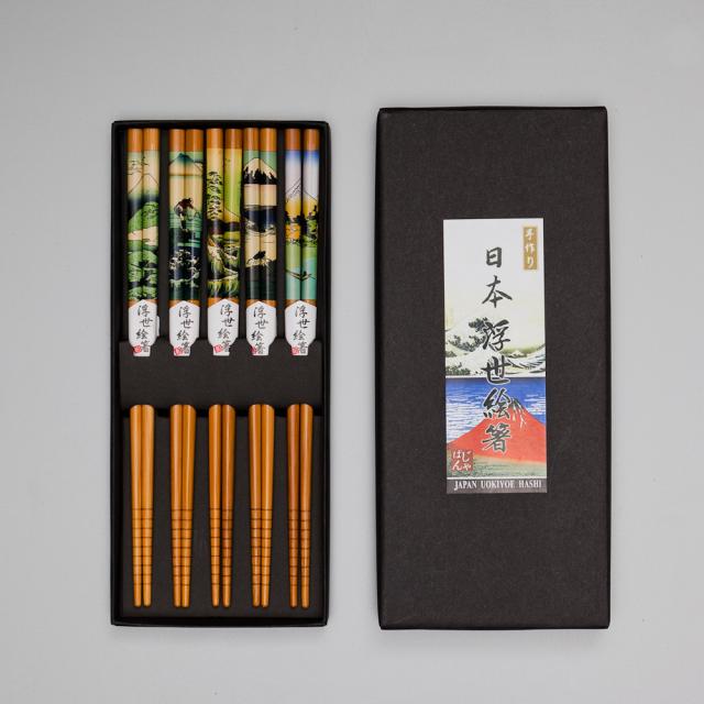 天然竹製 箸 5膳セット 浮世絵富士百景 ギフトBOX入り お箸 おはし k_name